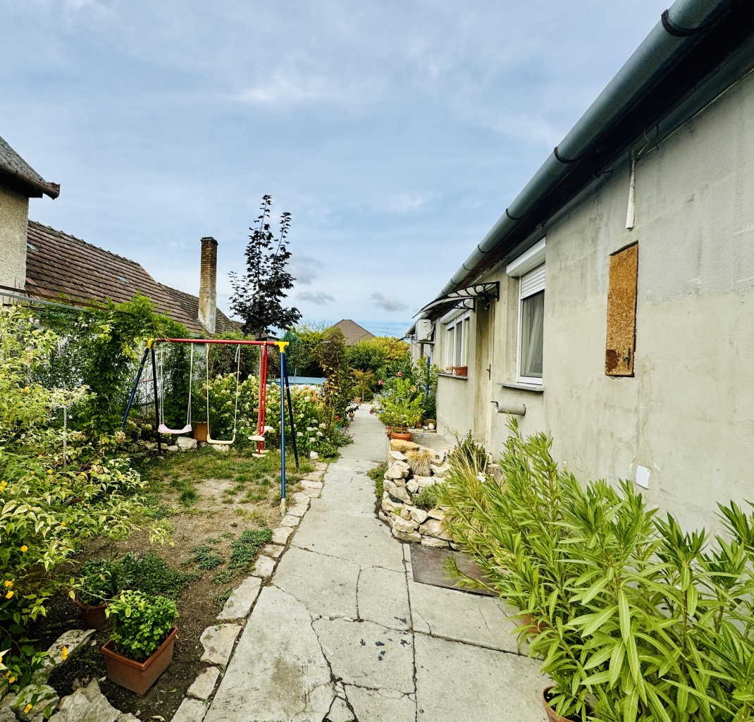 A 120 négyzetméter 4 szobára, konyhára, fürdőszobára, külön WC-re, kamrára valamint tágas előtérre oszlik. A 412 négyzetméteres telek gondozott, parkosított, igény szerint garázs is kialakítható rajta. Az udvaron található még, egy nagy méretű, fedett terasz valamint kerti tároló.