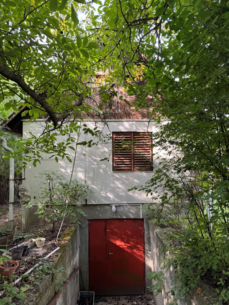 A telek 1430m2, egy része fákkal beültetett, hátsó részében szőlős található.