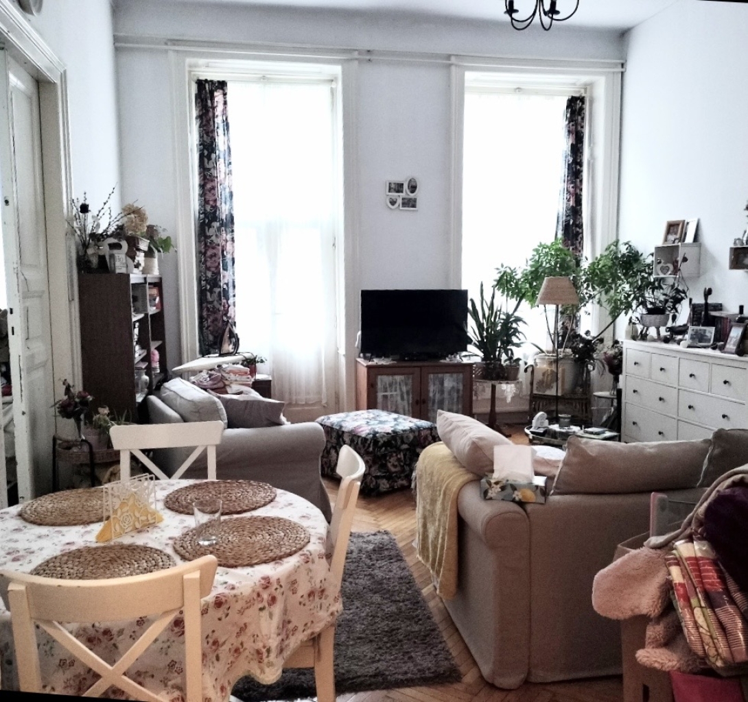 A duplakomfortos, nagypolgári lakás nagy méretű nyílászáróinak köszönhetően világos és napfényes. A fűtésről gázkazán gondoskodik.