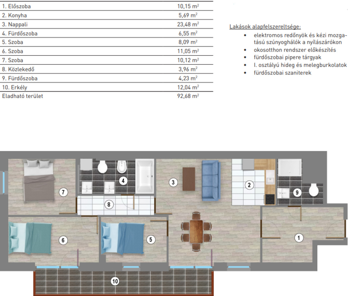 Lakások alapfelszereltsége: