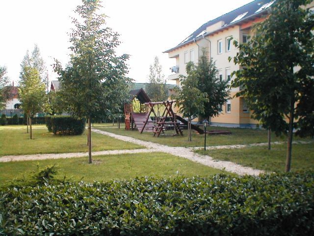 A lakópark saját belső kivilágított parkkal, rönk játszótérrel, zárt felszíni parkolóval rendelkezik. A lakáshoz 2db gépkocsi beálló tartozik.